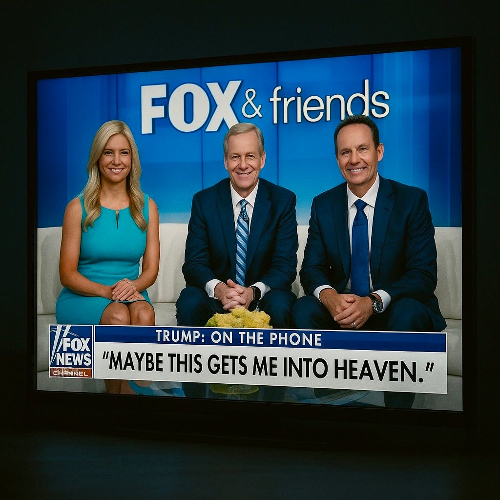 August 19. Trump called into Fox & Friends, dangling the strangest bargain of his career: “If I end the Ukraine war, maybe this gets me into heaven.”