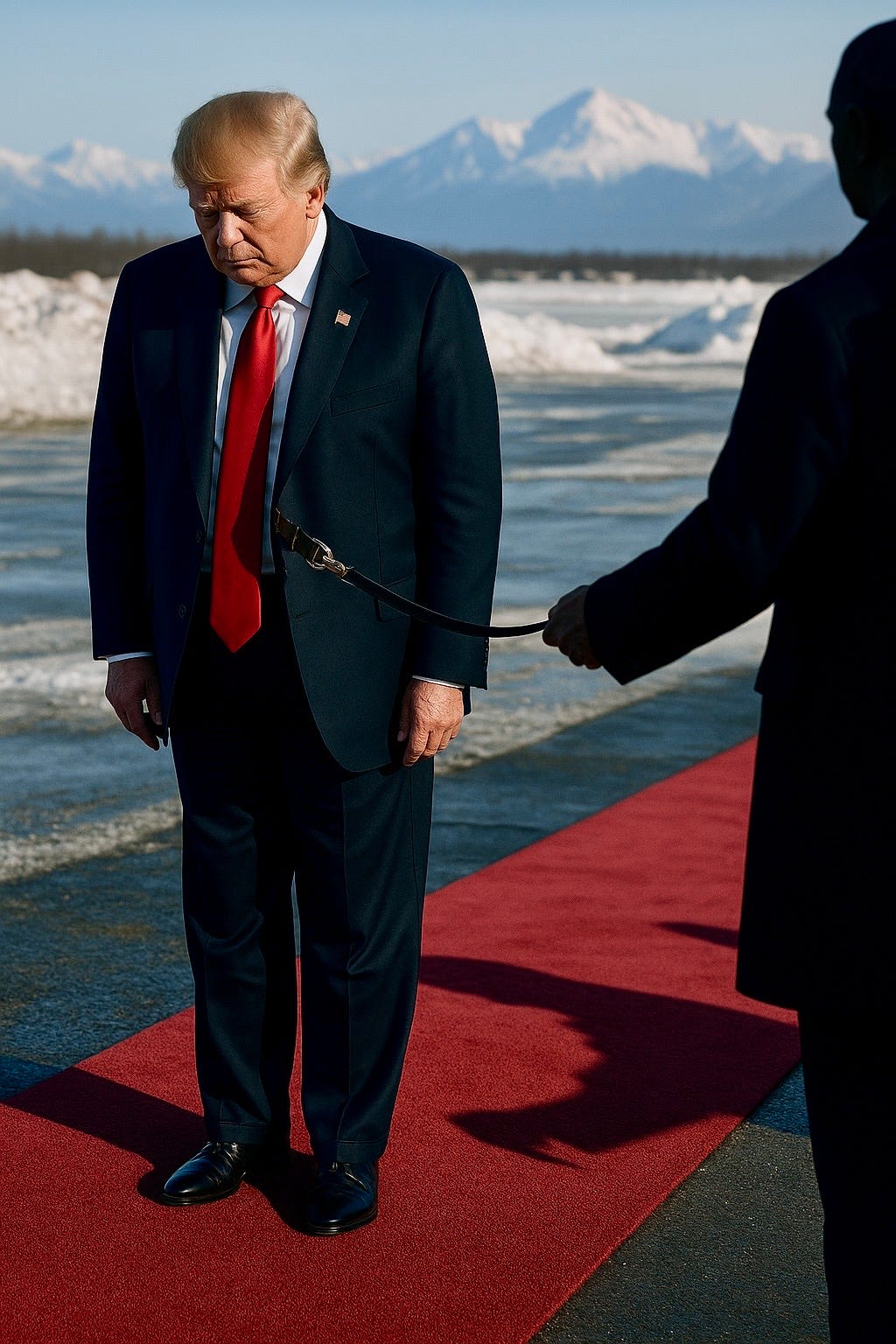 The Alaska Summit, 2025. August 15 was billed as peace, but what emerged was ownership. Two hours alone with Putin — no aides, no allies, no recordings. When Trump walked out, the grin was gone, the bluster drained. Putin smirked, and Trump mumbled like a servant thanking his master.